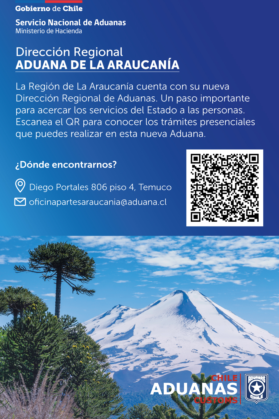 El Servicio Nacional de Aduanas informa el inicio oficial de operaciones de la Dirección Regional de Aduanas de La Araucanía, hito que se materializa con la publicación en el Diario Oficial de la resolución que dispone su instalación y puesta en marcha, en el marco de la Ley N° 21.713 sobre Cumplimiento de Obligaciones Tributarias.