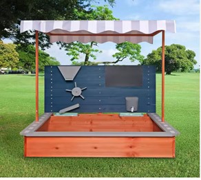 - Incorpora estructura contenedora para arena, tapa plegable, panel de actividades, recipientes plásticos y cubierta superior (toldo).