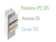 La estructura típica es: 1ª Capa Polietileno/ 2ª Capa Papel (cartón)/ 3ª Capa Polietileno/ 4ª Capa Aluminio/ 5ª Capa Polietileno/ 6ª Capa Polietileno.